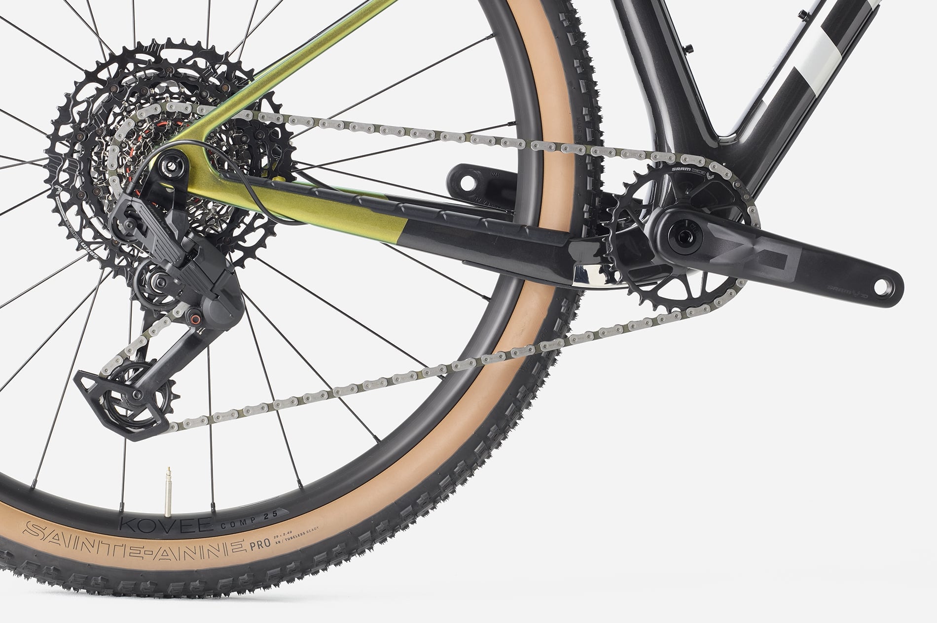 Bộ truyền động SRAM Eagle 70 cho cảm giác chuyển số rõ ràng, không bị trễ khi đang dồn lực. Leo dốc dài hoặc đoạn kỹ thuật vẫn giữ nhịp ổn định.
